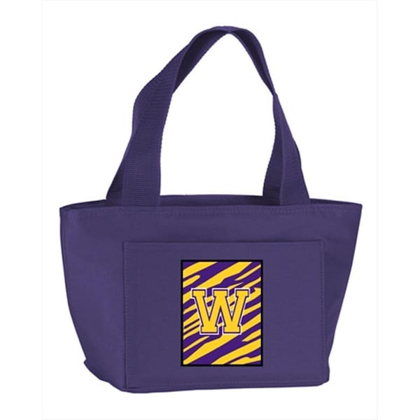 Monogram Letter W - Tiger Stripe- Purple Insulated Cooler Lunch Bag