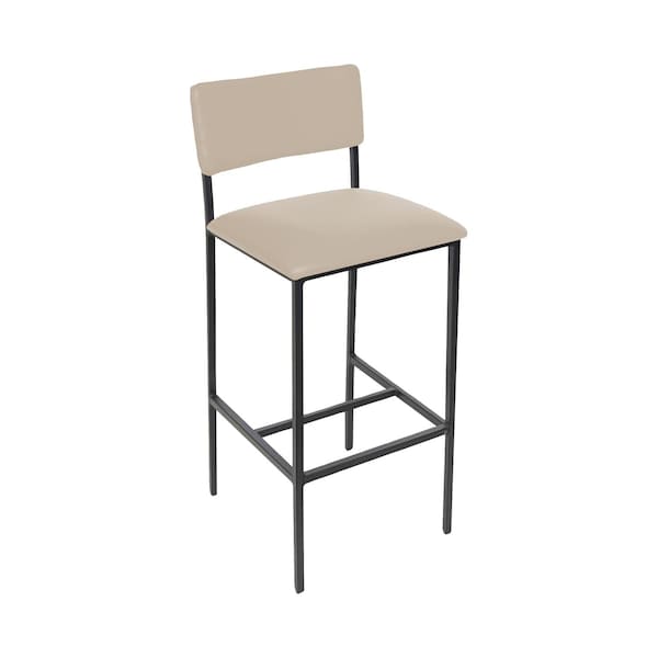 The Meghan counter-height stool offers a clean, modern look with the durability needed for busy restaurants and bars. It features a black powder-coated steel frame and upholstered seat and back in easy-to-clean Grade 4 Vinyl, making it a practical choice for high-traffic settings. The Sand Black finish adds a subtle touch of style while providing long-lasting performance. Designed for both comfort and durability, the Meghan counter-height stool is a reliable seating option that fits seamlessly into a variety of commercial interiors.
