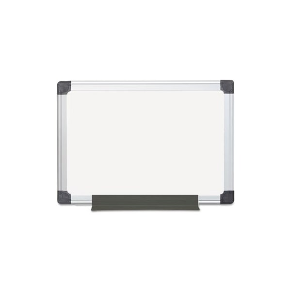 Melamine surface dry erase board is designed for occasional use and excellent value. Sturdy anodized aluminum frame includes a snap-on pen tray. Vertical or horizontal mounting is easy with the four-corner system. Board Type: Dry Erase; Board Width: 18in; Board Height: 24in; Board Depth: 0.75in.