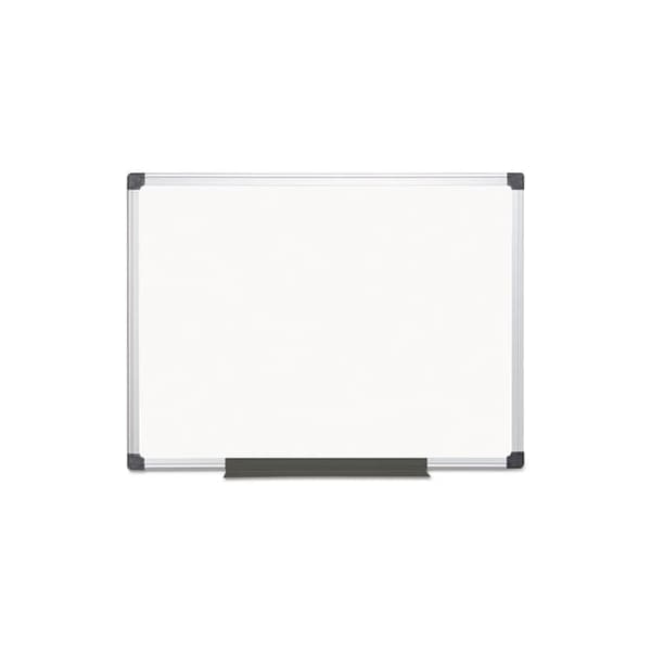 Melamine surface dry erase board is designed for occasional use and excellent value. Sturdy anodized aluminum frame includes a snap-on pen tray. Vertical or horizontal mounting is easy with the four-corner system. Board Type: Dry Erase; Board Width: 36in; Board Height: 48in; Board Depth: 0.75in.