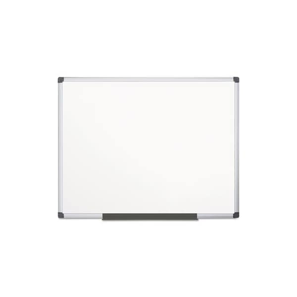 The magnetic porcelain baked enamel Platinum Plus surface resists staining, ghosting and scratching and is suitable for extensive use. Sturdy aluminum frame features the four-corner system, enabling easy vertical or horizontal mounting. Board Type: Magnetic Dry Erase; Board Width: 48in; Board Height: 72in; Board Depth: 1in.