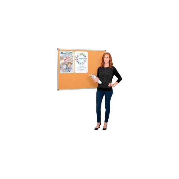 CORK BULLETIN BOARD - 60" X 36" - ALUMINUM FRAME GECTM 60" CORKBOARD OFFERS A SLEEK, UPDATED DESIGN TO HELP MODERNIZE OFFICES, CLASSROOMS AND RESIDENCES. 1/2" THICK AND LIGHTWEIGHT, THIS THIN PROFILE CORK BOARD IS NOT CLUNKY OR CUMBERSOME AND EASY TO INSTALL. THE RESILIENT CORK SURFACE IS SELF-HEALING, SO YOUR CORK BOARD WILL ALWAYS LOOK NEAT AND NEW. THE STURDY ALUMINUM FRAME INCLUDES AN EASY 4-CORNER MOUNTING SYSTEM THAT ALLOWS THE CORK BULLETIN BOARD TO BE MOUNTED VERTICALLY OR HORIZONTALLY. INCLUDES ALL MOUNTING HARDWARE. CORK BOARD HEIGHT: 36" CORK BOARD WIDTH: 60" CORK BOARD DEPTH: 1/2" ISO COMPLIANT TAA COMPLIANT