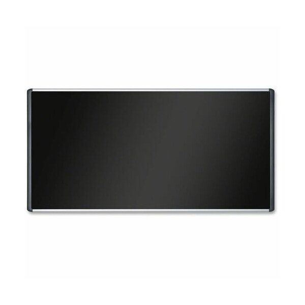 Deluxe bulletin board features a lush black fabric surface that never shows pin holes. Sleek, contemporary frame combines aluminum and black plastic for a sturdy yet stunning effect that brings these bulletin boards well into the 21st century. Board Type: Bulletin, Board Width: 96'', Board Height: 48in, Board Depth: 0.7''.