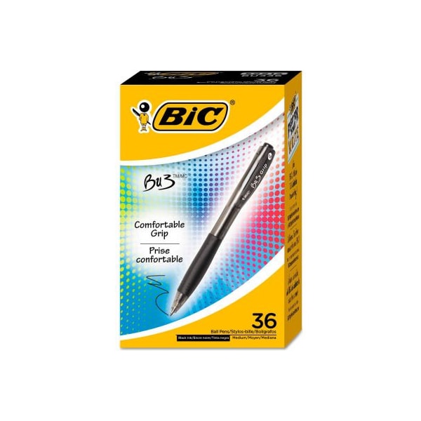 BIC BU3 Retractable Ballpoint Pen, Medium 1 mm, Black Ink/Barrel, 36/Pack