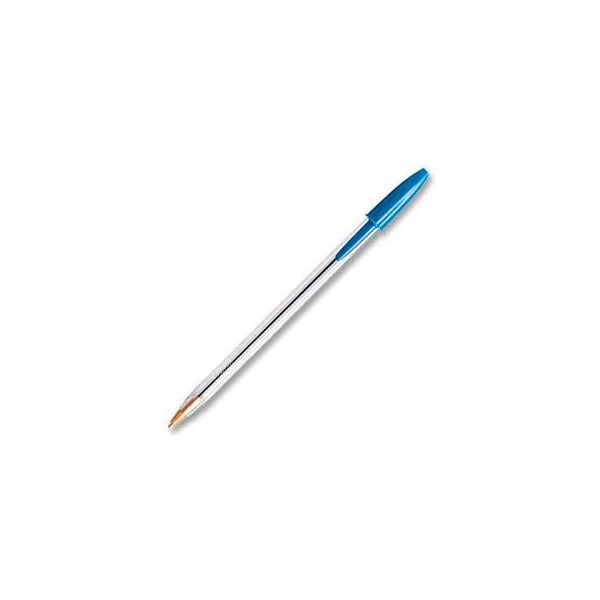 Bic Cristal Ballpoint Stick Pen, Medium, Clear Barrel, Blue Ink, Dozen