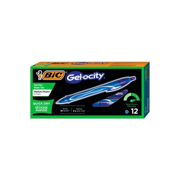 BIC Gel-ocity Quick Dry Retractable Gel Pen, Medium 0.7mm, Blue Ink/Barrel, Dozen