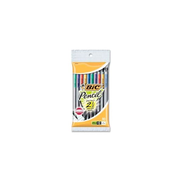 Bic mechanical pencil, 0.7mm, assorted barrels, 10/pack each mechanical pencil offers the write-out of 2.5 wood-case pencils. Design includes a top advance. Each mechanical pencil includes three full-length, no. 2 leads. Pocket clip & eraser.