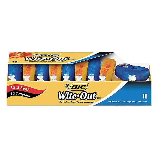 Correction Tape, Color White, Width 1/8 in, Length 472 in, Package Quantity 10