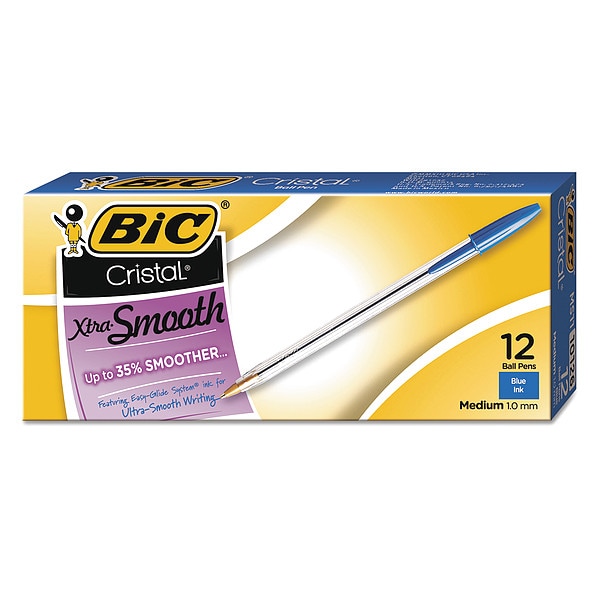 Enjoy an ultra-smooth writing experience with the BIC Cristal Xtra Smooth Ballpoint Pen, The Pen America Grew Up With. Equipped with proprietary Easy-Glide System ink, the colored pens dispense ink smoothly and evenly, offering up to 35 percent smoother writing than traditional BIC ballpoint ink and ensuring a consistent and vivid line. The versatile 1.0 mm pens medium point is designed to handle a wide variety of applications. The clear barrel shows you when you're running low on ink, and the iconic hexagonal barrel shape helps provide a good grip. The pen is non-refillable.