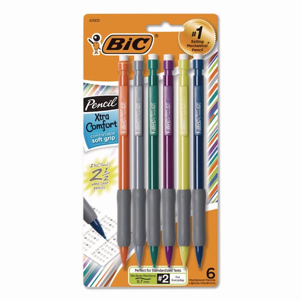 Enjoy a comfortable writing experience with the BIC Xtra-Comfort Mechanical Pencil. Featuring a soft grip that provides better writing control and comfort, this mechanical pencil comes with smooth-writing #2 lead that does not smudge and erases cleanly. The lead advances quickly and easily with a simple click, eliminating the need for sharpening. Ideal for standardized tests, each pencil comes with three #2 leads that create accurate, crisp marks. Vibrant barrel colors, BIC Xtra-Comfort Mechanical Pencils are great for school, home, or the office.