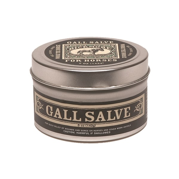 Bickmore Gall Salve has been a proven medication since 1892, as the preferred treatment for any wound, cut, sore, or scrape a horse can get. Gall Salve will eliminate the itching and irritation of eczema, fungus, and ringworm. As a multi-purpose, topical antiseptic ointment, it has a unique combination of emollients to soften, soothe and lubricate damaged skin. For hooves, massage frequently around coronary band to counteract hardness.