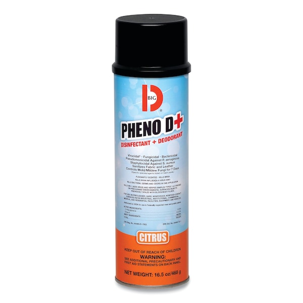 Big D PHENO D+ is an EPA-registered, hospital-grade antimicrobial agent and two-way deodorizer for use on pre-cleaned hard, nonporous surfaces including toilets, urinals, bathtubs, shower stalls, seats, benches, lockers, partitions, counters, fixtures, knobs, handles, railings, telephones, furniture, equipment and other surfaces which could harbor hazardous microorganisms. PHENO D+ kills harmful viruses, bacteria, fungi, mold and mildew, while sanitizing and deodorizing.