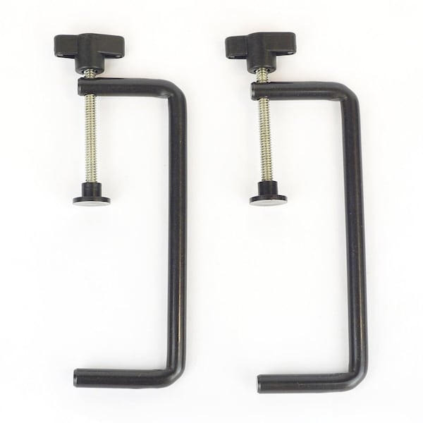 Big Horn's 3-inch to 4-1/2-inch fence clamps makes using a sacrificial fence or stop block so easy you will wonder where they have been all your life. Simply drill a 7/16-inch hole in anything you want to clamp to your saw's fence and you are ready to go. Also works great for model builders when laminating bent wood. Just cut a pattern board and drill holes along the length for the clamp to drop into. Put the prepared lamination against the pattern and progressively clamp the length of the pattern.