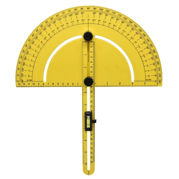 The Big Horn 19104 Plastic Miter Saw Protractor 7-Inch Angle Finder is the ideal measuring tool for calculating angles in slope constructions such as stairs, window frames, and roof rafters. This multipurpose tool can be used as a regular level, T- Square, sliding set square, bevel, and even a miter gauge. Features easy to read metric and standard scales. Equipped with a level dial that can be easily transferred to any position vertically along the arm.