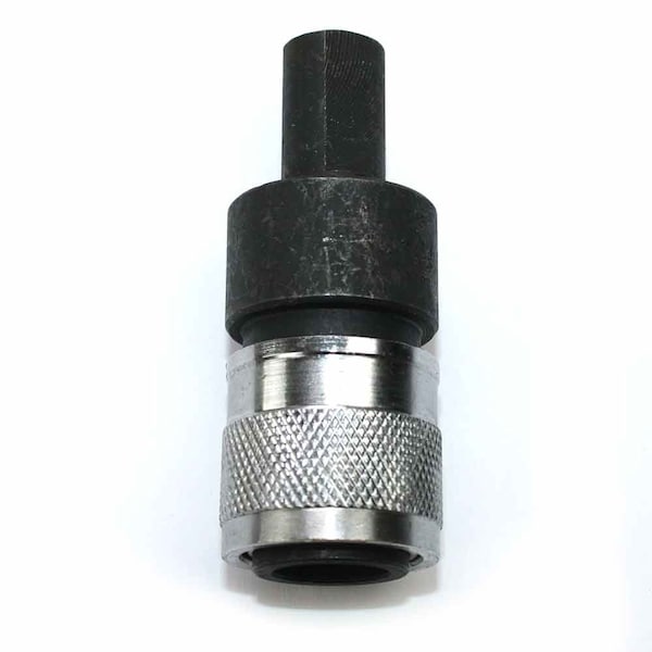 Heavy Duty Hex-Drive quick-release drill adapter with a three-sided 1/2” shank works like an air tool quick chuck. Just pull back on the chrome plated sleeve, push the 3/8” hex end of the drill shank into the adapter and release the sleeve to lock the drill bit firmly into the adapter. When you're ready to disengage the drill bit from the adapter just a simple pull on the sleeve releases the bit.
