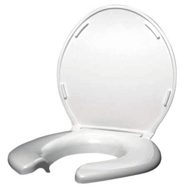 Toilet Seat, For Bowl Shape Elongated or Round, Toilet Seat Type Standard, Front Type Open, Includes Cover Cover Included, Color White, Hinge Material Stainless Steel, Hinge Design Slow Close, Seat Height 2 1/2 in, Bolt to Seat Front 20 1/16 in