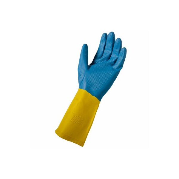 Soft Scrub, Large, Blue Yellow, Women's Neoprene Coated Latex Glove, Cotton Flock Lining, 12 Gauntlet Cuff