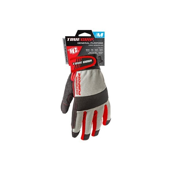 True Grip General Purpose Glove, Size Medium Designed for a wide variety tasks, these gloves are reinforced to protect hands while providing a comfortable fit Durable synthetic leather palm, palm and knuckle padding, and adjustable wrist strap for a customized fit Touchscreen compatible