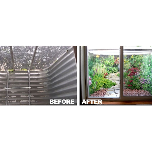 A white mural backdrop, for a clean look or artistic endeavors - Complete kit includes 1 window well scene, appropriate hooks and fasteners, and installation instructions, Durable plastic material that trims easily to exact size with scissors, Tolerates moisture, wind, hot & cold temperatures, Applies quickly and easily with hook and loop fasteners provided, Resists fading with high vibrant UV inks, Conforms to the curve of any window well out away from the window, Changes a problem area into an asset and allows natural daylight to enter