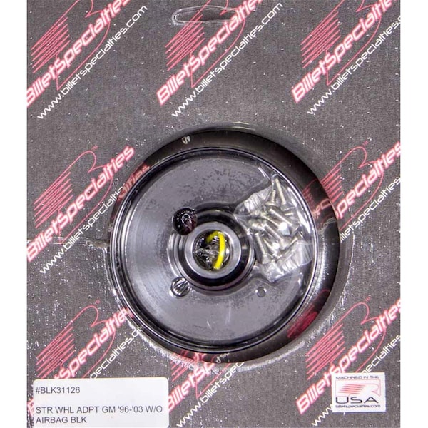 Steering Wheel Adapter for 96-03 GM Machined from billet aluminum and engineered to fit GM steering column applications. for Billet Specialties steering wheels or other 9-hole aftermarket steering wheels. Specifications - Color: Black