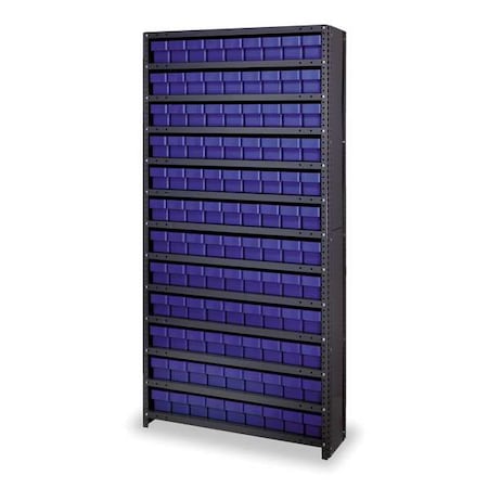 Steel Enclosed Bin Shelving, 12 in D x 75 in H x 36 in W, 13 Shelves, Blue