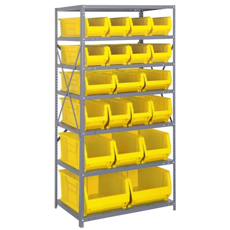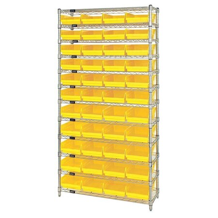 Steel, Polypropylene Bin Shelving, 12 in D x 74 in H x 36 in W, 12 Shelves, Yellow