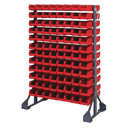 Steel Mobile Bin Rail Floor Rack, 36 in D x 53 in H x 20 in W, Red