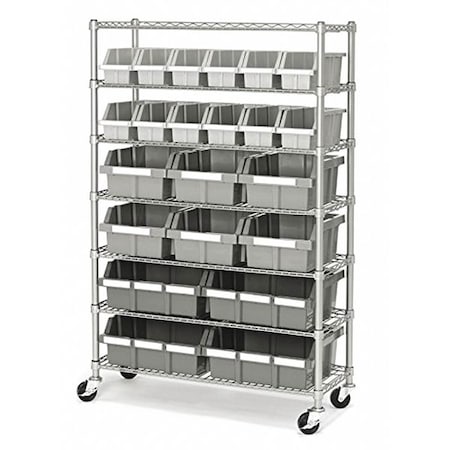 Steel Bin Shelving, 42 in W x 75 in H x 18 in D, 7 Shelves, Gray/Blue