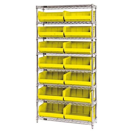 Steel, Polypropylene Bin Shelving, 14 in D x 74 in H x 36 in W, 8 Shelves, Yellow