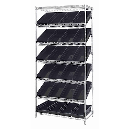 WIRE SHELVING UNIT W/24 BLACK BINS
