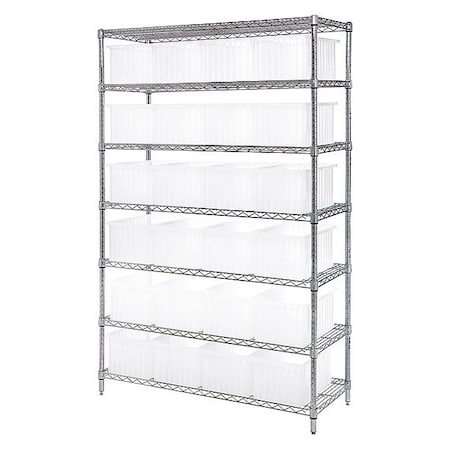 Steel Bin Shelving, 18 in D x 74 in H x 48 in W, 7 Shelves, Clear