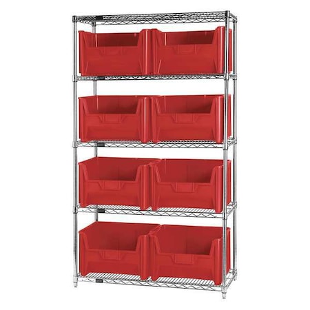 Steel, Polypropylene Bin Shelving, 14 in D x 74 in H x 36 in W, 8 Shelves, Red
