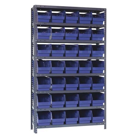 Steel Bin Shelving, 12 in D x 75 in H x 36 in W, 8 Shelves, Blue