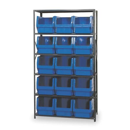 Steel Bin Shelving, 42 in W x 75 in H x 18 in D, 6 Shelves, Gray/Blue