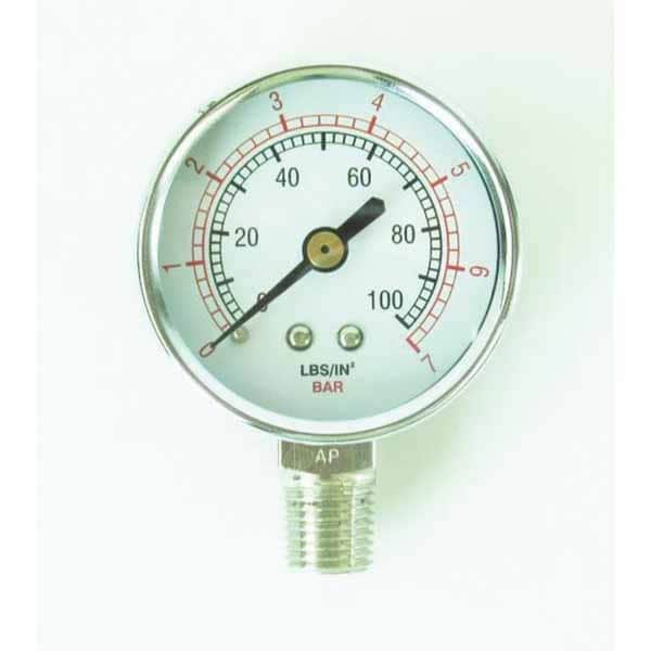 100# gauge with 2-3/16in diameter NPT M Thread Size; 0-100 PSI; Bottom port