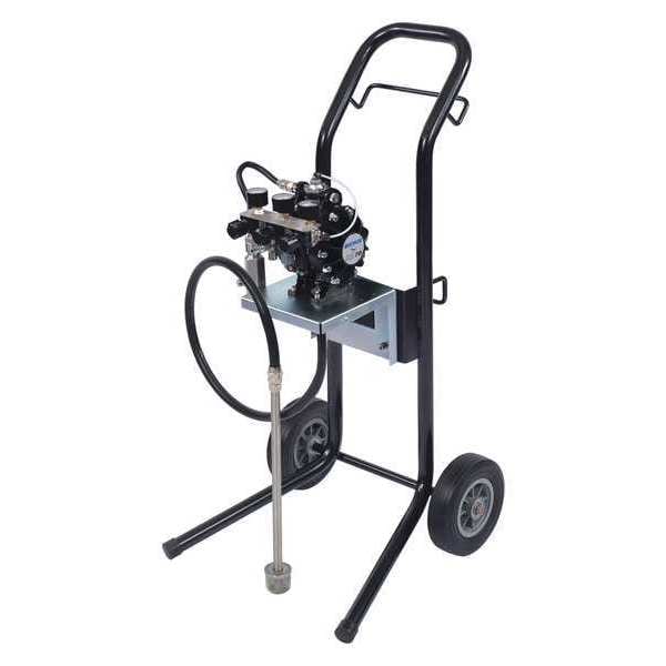 Diaphragm Pump,Pressure,Self-Priming Yes,Capacity 5 gal.,Material Acetal,Max. Pressure 100 psi,Air Line Connector 1/4 In. NPT,Paint Line Connector 3/8 In. NPS,Diaphragm Material PTFE,Shaft Material Stainless Steel,Valve Material Stainless Steel,Length 24 In.,Width 24 In.,Height 48 In.,Max. Temp. 120 Degrees F,Application Used In General Industrial and Wood Finishing Markets,For Use With Water, Solvent Based, Industrial Coatings Stains, Lacquers, Varnishes