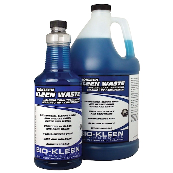 Bio-Kleen Kleen Waste holding tank treatment is a highly efficient and concentrated dual-action enzyme and quaternary designed to control odor, waste, tissue and various buildup with regular use. Ensuring clean, properly maintained, odor-free black and grey tanks within your boat or RV. Kleen Waste is formaldehyde free, safe and 100% biodegradable. Safe for septic systems and can be used to clean and deodorize drains, disposals, bilges, portable toilets and latrines.