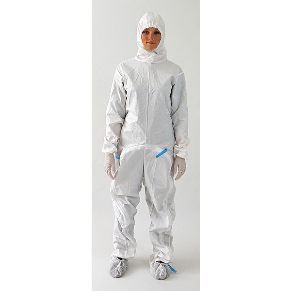 Disposable Coveralls, Ankle Closure Elastic, Anti-Static Yes, Attached Hood Yes, Chest Size - Maximum 54 in, Chest Size - Minimum 51 in, Clean Process Status Clean Processed, Closure Features Zipper, Closure Type Zipper, Color White, Coverall Style Hooded, Cuff Style Elastic, EPA Protection Level Not Rated, Features Drop-Down Design* Technology, Federal 209E Cleanroom Class 10, Hazard Type Not Available, Height - Maximum 80 in, Height - Minimum 78 in, Hood Style Elastic, Package Quantity 15