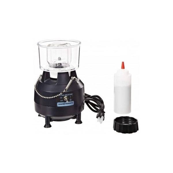 Unique BeadBeater provides a safe and efficient method for disrupting cell and tissue samples. Designed for sample quantities up to 100 g (wet weight) in 200 ml of medium. Ideal for grinding and homogenizing cells and difficult to digest samples. Unit features a Teflon rotor that creates a shearing action using minute glass beads. Cells can be 90% disrupted in less than three minutes. Supplied complete with 350 ml polycarbonate chamber, one pound of glass beads (0.1 mm), motor base, ice-water jacket and instructions. Optional small chambers are available for use with reduced sample volumes. Chambers have a working volume of 15ml and 50ml and a maximum sample size of 7g and 12g respectively.