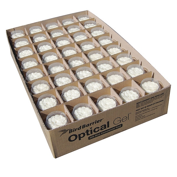 Multisensory Bird Repellent, Product Type Bird Repellent, Indoor/Outdoor Use Outdoor, Targeted Animals Birds, Active Ingredients Citronella, Peppermint Oil, Overall Height 3/8 in, Form Gel, Overall Width 2 1/2 in, Color White, Container Size 0.5 oz, Overall Depth 2 1/2 in, Container Type Dish, Includes Not Applicable, Standards Not Applicable, Package Quantity 200