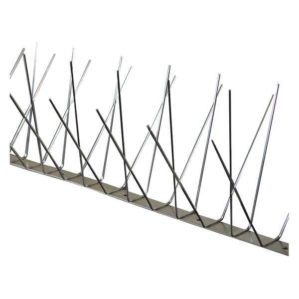 Bird Repellent Spikes, Spike Color Silver, Spike Material Stainless Steel, Base Material Stainless Steel, Overall Length 51 ft, Overall Width 8 in, Overall Height 4 3/4 in, Targeted Birds Pigeons, Number of Mounting Holes 15, Product Type Bird Repellent Spikes, Bird Pressure Light to Heavy, For Use On Chimneys, L-Beams, Ledges, Overhangs, Parapets, Pipes, Roof Edges, Signs, Includes Mounting Hardware Yes