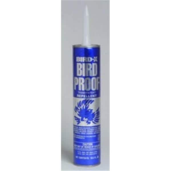 Keep bird pests off their normal roosting areas with an application of BIRD-PROOF Bird Repellent a non-toxic sticky chemical that makes a surface tacky and uncomfortable to birds. Birds avoid BIRD-PROOF Bird Repellent like humans avoid wet tar. PROTECT YOUR PROPERTY FOR A FULL YEAR OR LONGER! It s non-toxic and harmless to metal structures sealed masonry and ornamental metals. APPLY WITH A STANDARD 10" CAULKING GUN! Ledges windowsills gutters cornices ornamental copings and protruding beams - any surface where bird pests roost or perch. USE IN ANY WEATHER INDOORS OR OUTDOORS LITERALLY ANYWHERE Water tanks trees shrubbery shipping docks and railroad sidings yards parking lots roof perimeters air conditioners and more.