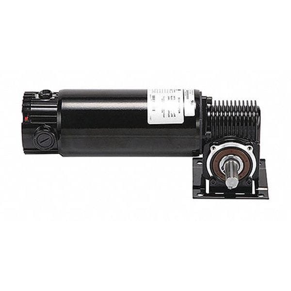 DC Gearmotor,90RPM,90V, Shaft Orientation Right Angle, Output Shaft Type Keyed, Motor Enclosure Totally Enclosed Nonventilated, Operating Voltage 90V DC, Motor Type Permanent Magnet DC, Maximum Torque 100 in-lb, Overhung Load Capacity 300 lb, Rotation CW/CCW, Mounting Orientation Any Angle, Gear Ratio 20.5:1, Input Horsepower 1/4 hp, Output Connection Depth 8 13/16 in, Output Shaft Diameter 5/8 in, Bearing Type Ball, Color Black