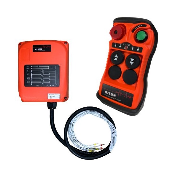 Universal wireless Radio Remote for hoists and winches. 300 Ft. Range. Includes 2 wireless transmitters and 1 receiver. Works for 24v-264v. IP65 Protected with drop protection case.
