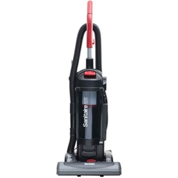 Upright vacuum with a 15" cleaning path provides an exceptional clean certified with the CRI Bronze Seal of Approval. 3.5-quart, bagless dirt cup eliminates the need to purchase replacement bags to lower your of ownership. Washable HEPA filter captures 99.97 percent of particles for cleaner emissions. This vacuum offers a sound level of 70.6 dBA for distraction-free cleaning during the day. Onboard tools and 10' stretch hose simplify your cleaning process. Vacuum also offers a 40' cord, 135 CFM and more.