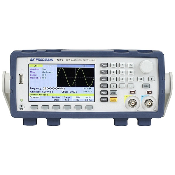 Signal Generator, Output Amplitude 2 mV to 20 Vpp, Output Attenuation greater than 80 dB at 10 MHz, Includes Power Cord, USB Cable, Manufacturers Warranty Length 3 yr