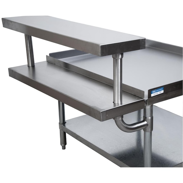 Plate shelf adds to EQ-WS15. Shelf is adjustable and creates a second shelf to be used for plates or utensils directly in front of your equipment. Connects to the legs of the equipment stand for convenience. Requires SVET-1530 or VETS-1530 and EQ-WS15 to utilize this shelf. Does not fit EETS units.