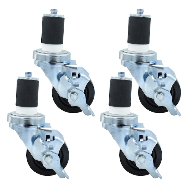 3-inch Polyolefin Stem Casters, Top Lock Brake, 300lb Capacity, 4PK
