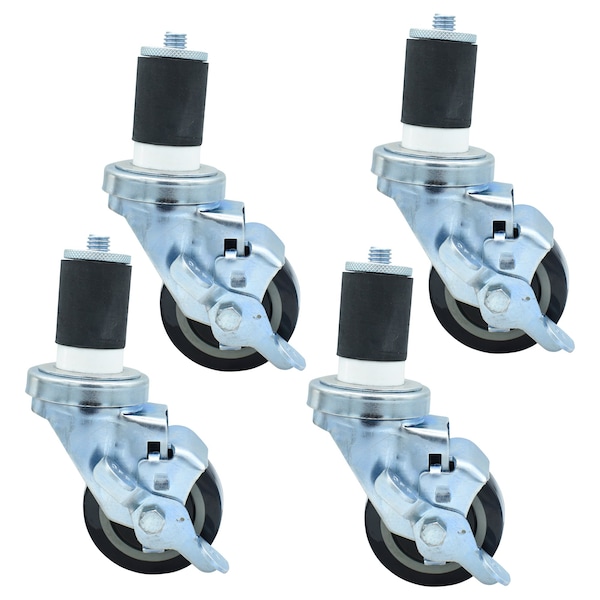 3-inch Polyurethane Stem Casters, Top Lock Brake, 300lb Capacity, 4PK