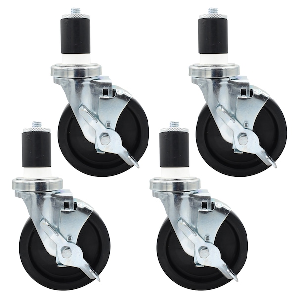 5-inch Polyolefin Expanding Stem Casters, NSF, Top Lock Brake, 300lb Capacity, 4PK